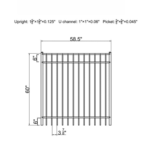 Ornamental Aluminum Flat Top 5' Wide x 5' Tall 3-Rail Gate with 3-7/8" Air Space